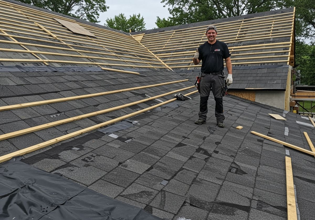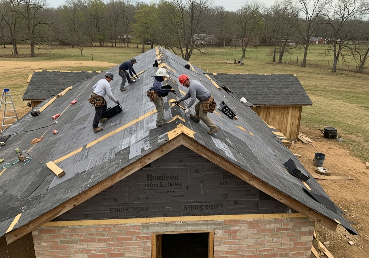 Our skilled team of professional roofer contractors will then begin the installation process. We meticulously remove the old roofing materials, inspect the roof deck for any damage, and make necessary repairs. We then install a high-quality underlayment to provide an additional layer of protection against moisture. Finally, we install the new roofing material with precision and attention to detail, ensuring a seamless and weather-tight finish. Our expertise extends to specialty projects like barndominiums, ensuring top-notch quality.